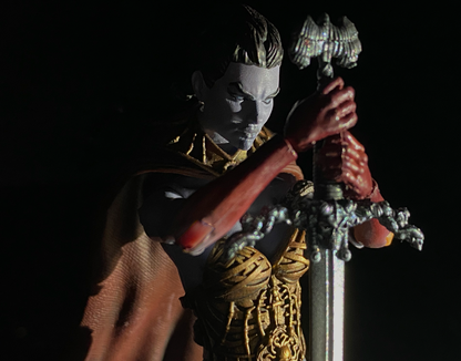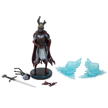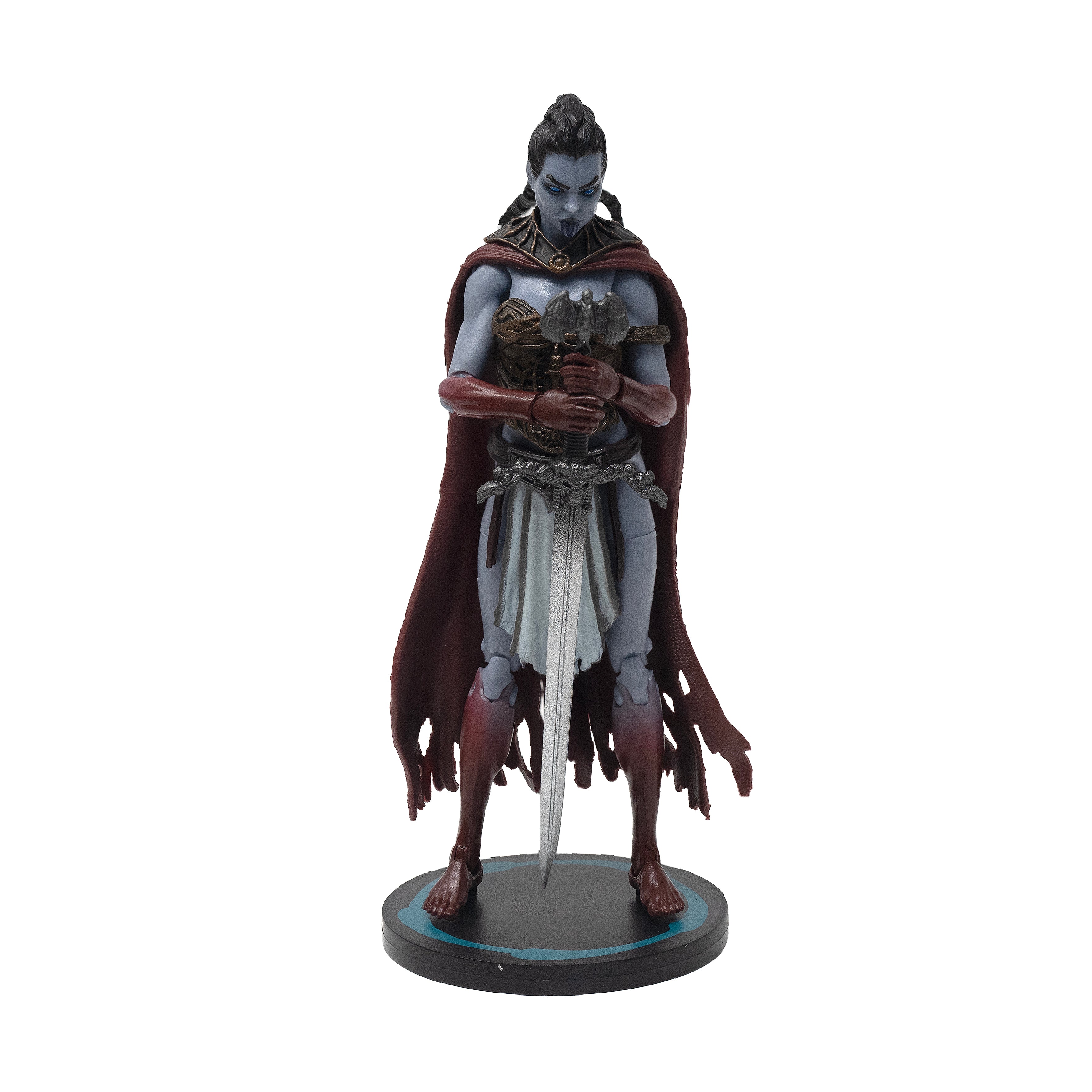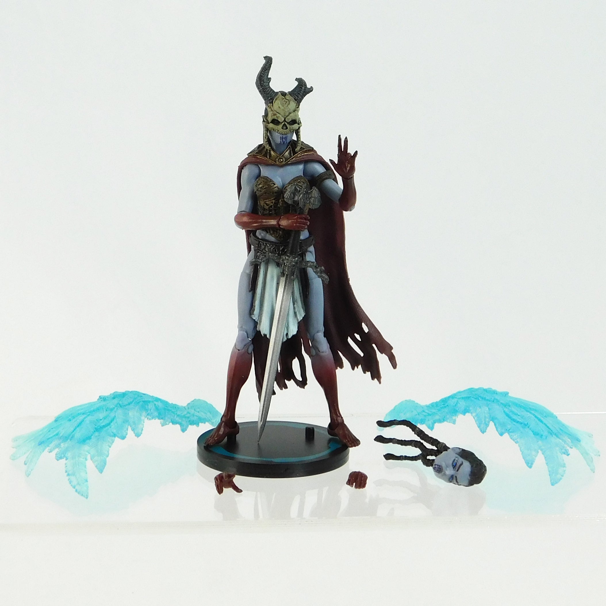This dangerously beautiful specimen is ready to fight her way to the top. The detailed and fully articulated figure comes packaged with an alternate head with a bone helmet, magical wing accessories, a fighting sword, and removable secondaries including her cape and gorgeous clothes.
