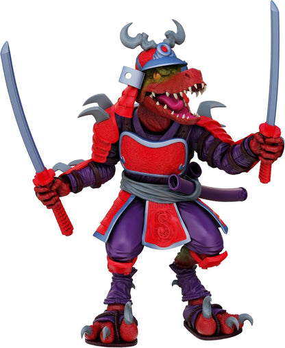 Saurozoic Warriors are battling dinosaur fighters inspired by the old skool action figures of the 90’s! Each fully articulated figure is 6-inch scale and comes with a full range of wild accessories. Charged with carrying out the will of their shogun, the Sokudo Legion is on a mission to destroy the rebellious Staze Akiden! This army of vicious fighters is said to be impossible to best with swords, and if that wasn’t bad enough, they’ve been equipped with shuriken guns to rain spinning blades on any battlefield. Figure has 29 points of articulation and includes helmet, rapid fire shuriken gun, long sword with sheath, and short sword with sheath.