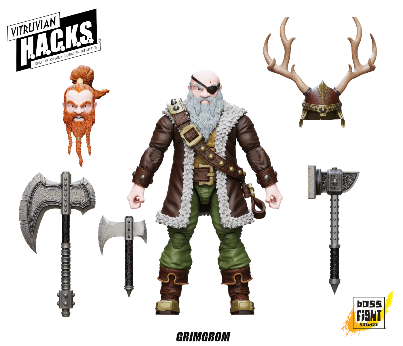 Vitruvian H.A.C.K.S. Action Figure - Grimgrom (Dwarf Mercenary)