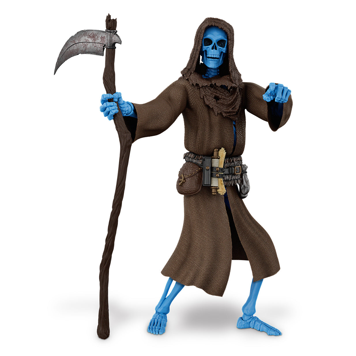 These 1:12 scale skeletons come packaged for powerful battles clad in their hood and collar, cloth robe, belt, magic book, flame, scythe, alternate head and hands, and stand for posing.