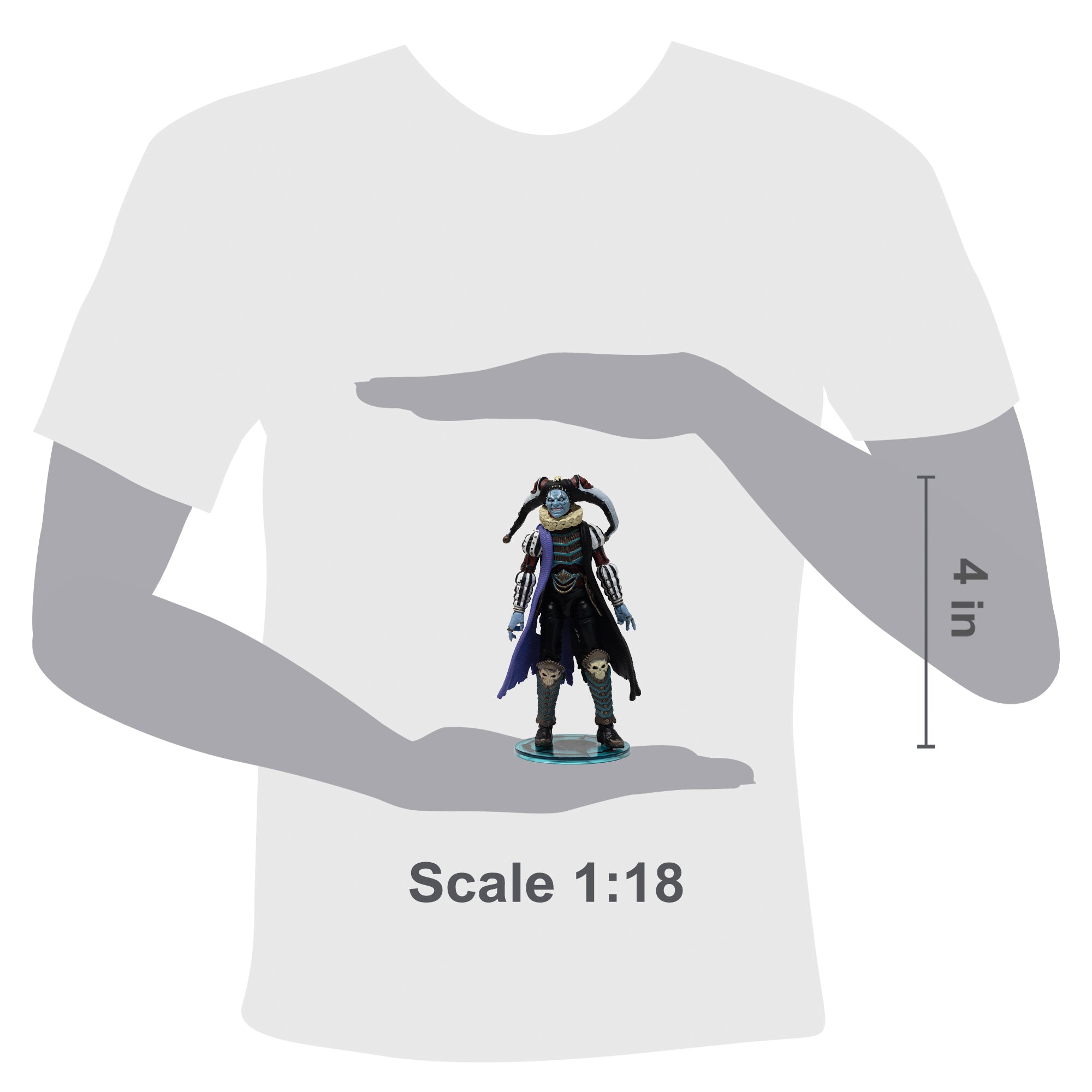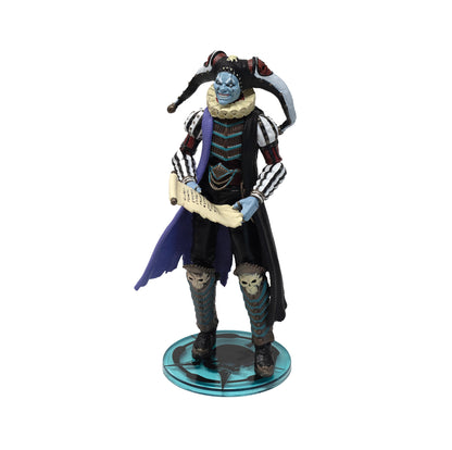 Malavestros provides a rare blip of comic relief in the Court of the Dead, however you would be wise not to dismiss him. Despite his grotesquely playful visage and unpredictable antics, he is an invaluable cache of truth who may choose to dispense his wisdom wrapped in morbid humor and seasoned with acerbic pranks. His wealth of passion is matched only by his devotion to his fellow mourners; the monastery of Malavestros, called HushHyde, is home to the lost, unhinged, and wayward refugees in the Land of the Dead. No Court of the Dead collection is complete without Death’s impish chronicler-fool. This 1:18 scale detailed and fully articulated action figure comes packed with extra hands to securely grip accessories, removable secondaries, books, scroll, and magical flames. This collectible toy includes one window boxed action figure with accessories and figure stand and is age 12+.