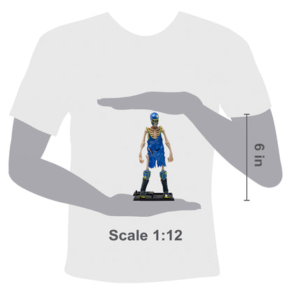 This 1:12 scale figure comes packaged for deathly ring fights wearing his ragged singlet and kneepads, with a microphone and barbed wire wrapped bat, and carrying his championship belt for eternity. He has an alternate head and stand for epic displays.